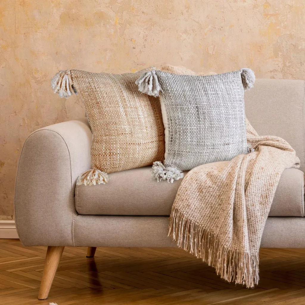 Gati vastag szövésű párnahuzat rojtokkal Rózsaszín 40x40 cm