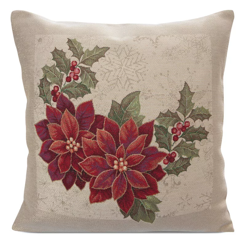 Gobelin karácsonyi párnahuzat fényes fonallal Natúr/piros 45x45 cm +/-5%