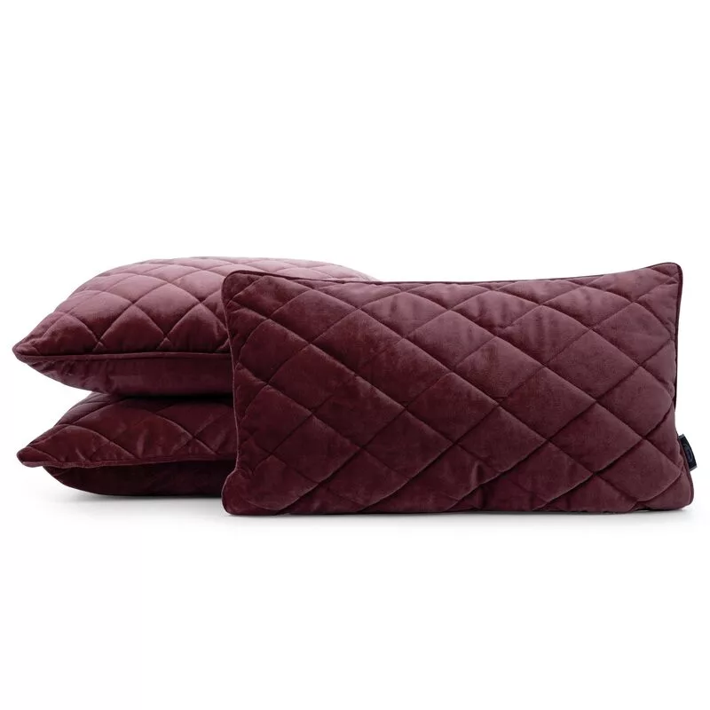 Téglalap alakú steppelt bársony díszpárna töltettel Bordó 30x50 cm
