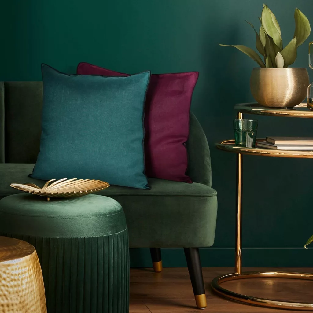 Egyszínű párnahuzat vászon szövetből fekete szegéllyel Zöld 45x45 cm
