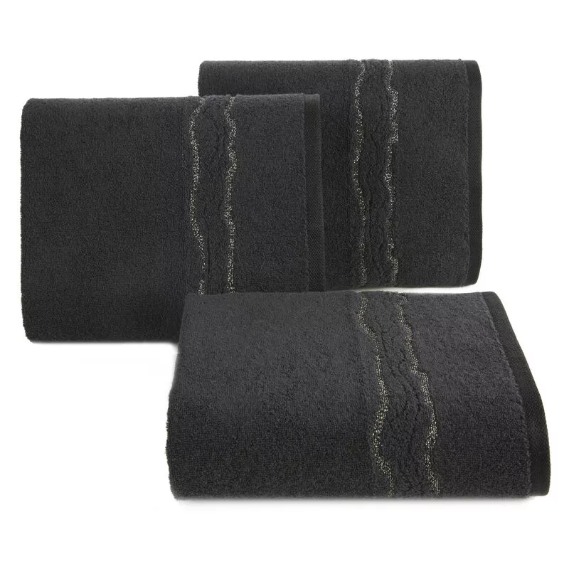 Karin pamut törölköző fényes cérnával szőtt díszítéssel Fekete 50x90 cm